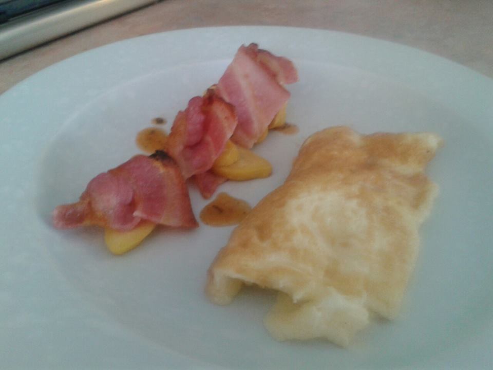 But what to do with them? Well, because lately I’ve been over complicating things with fine dining and what not, and because I am massively hungover, I thought I’d do a take on bacon and eggs:
