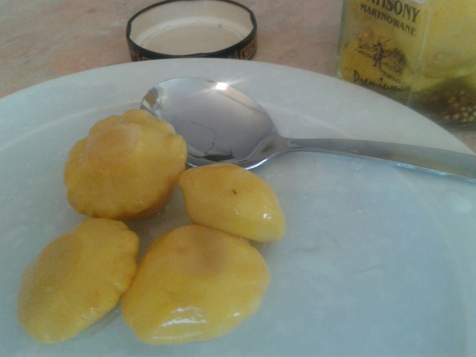 I was in my local Polish delicatessen and saw this jar of beautiful yellow things. I haven’t the faintest idea what they are but reckon these far eastern delights must be delicious as the cashier woman smiled warmly at me when I bought them.
