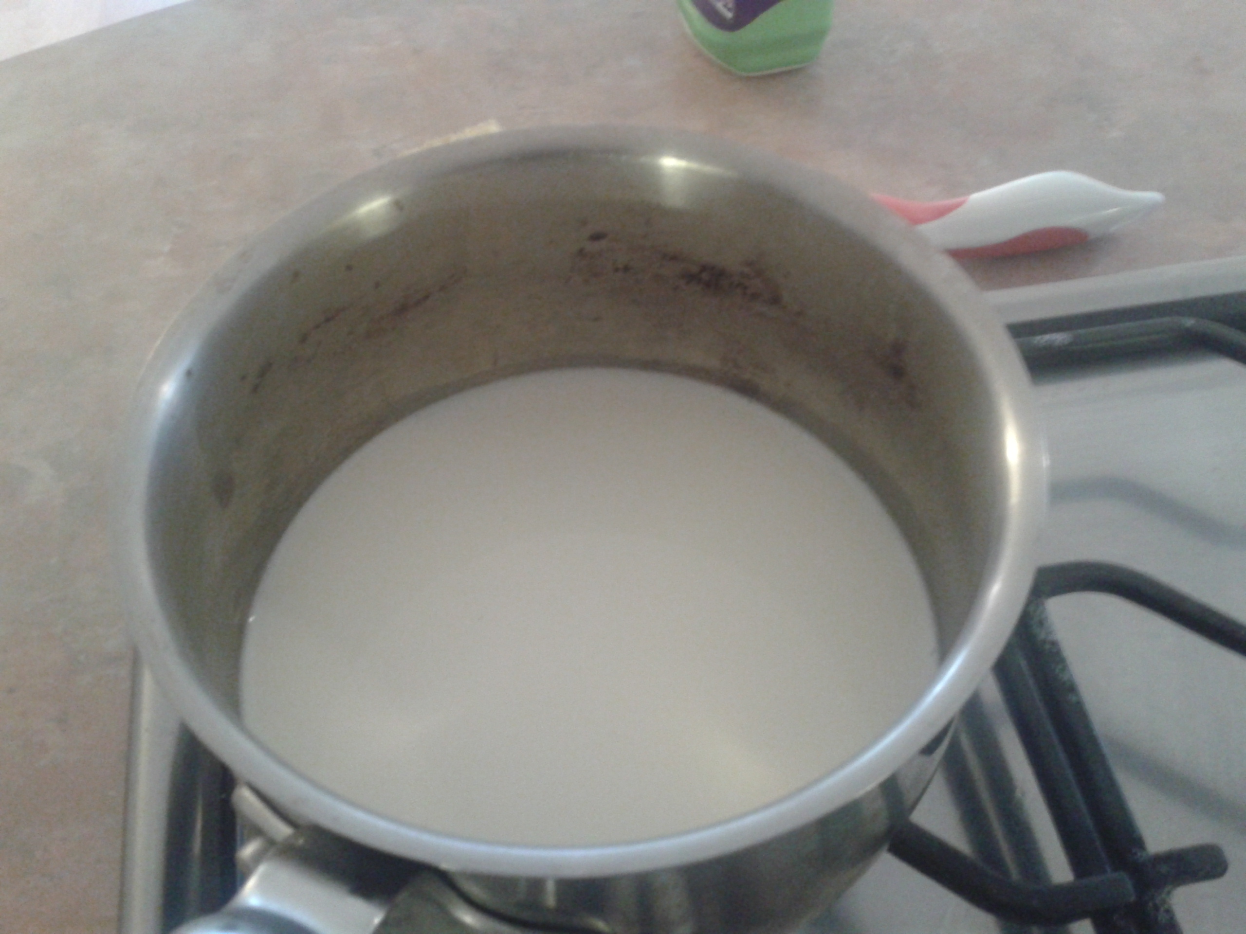 I start by making creme anglais; that’s done by heating 1/4 pint single cream, 1/4 pint milk and 50g sugar in a sauce pan: