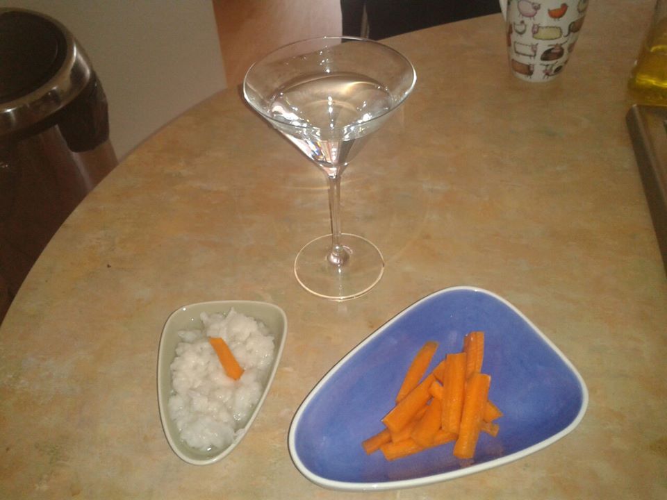 Carrot crudite, toilet paper dip and straight Goldshlager cocktail party! Stunning!