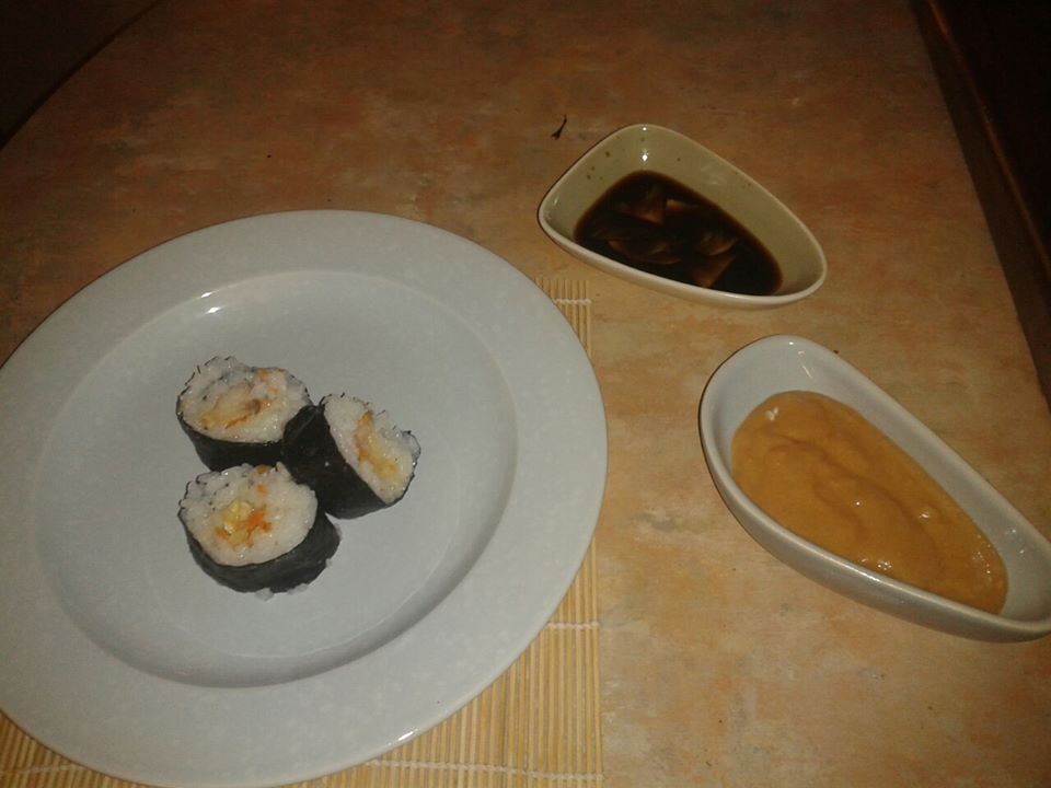 And here’s where my camera failed and missed the part where I over cooked the sushi rice and basically made a bit of a mess at the maki roll assembly line, so erm I will just let you judge how it must have gone: