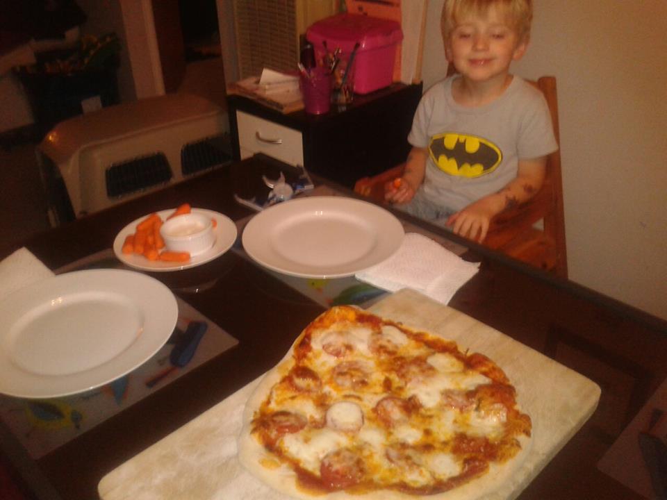 Luckily my home-style chef friend was chuckling away to herself during my antics and has made us all a proper pizza: