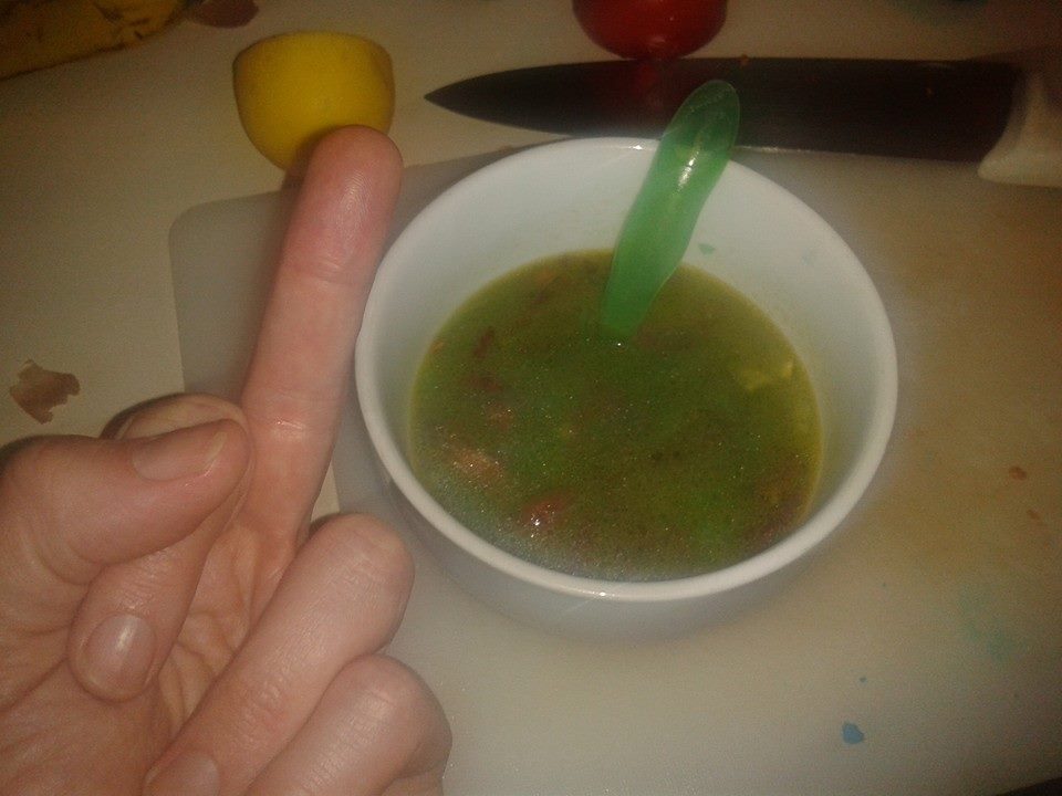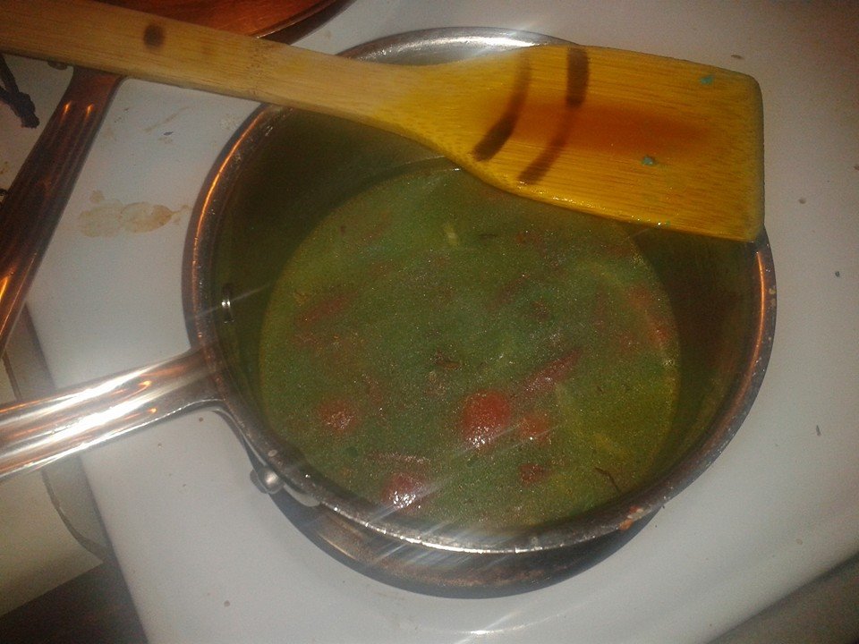 After adding in the chicken stock, my cursed recipe began going hulk green!