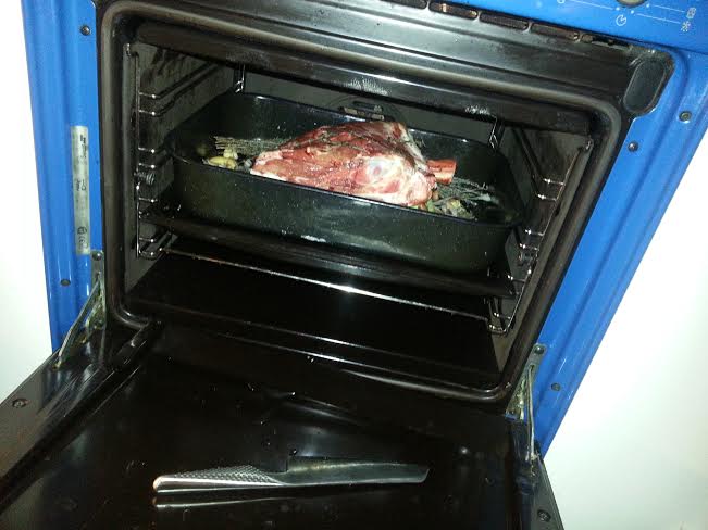 Anyway, after spending hours chopping up salt and drinking beer, looking out of windows and crushing peanuts, I remove the lamb from the oven: