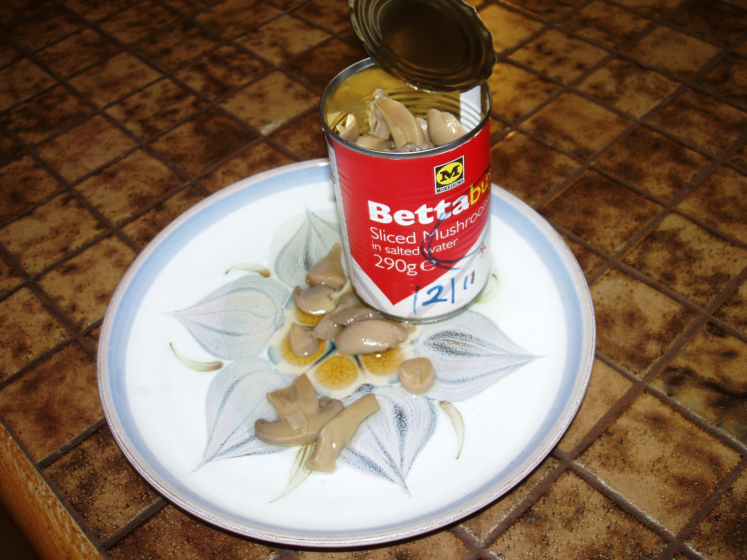 They taste fine, but because they’ve been in a tin for over 3 years, very metallic, but yeah, OK; mushroomy-ee-y.