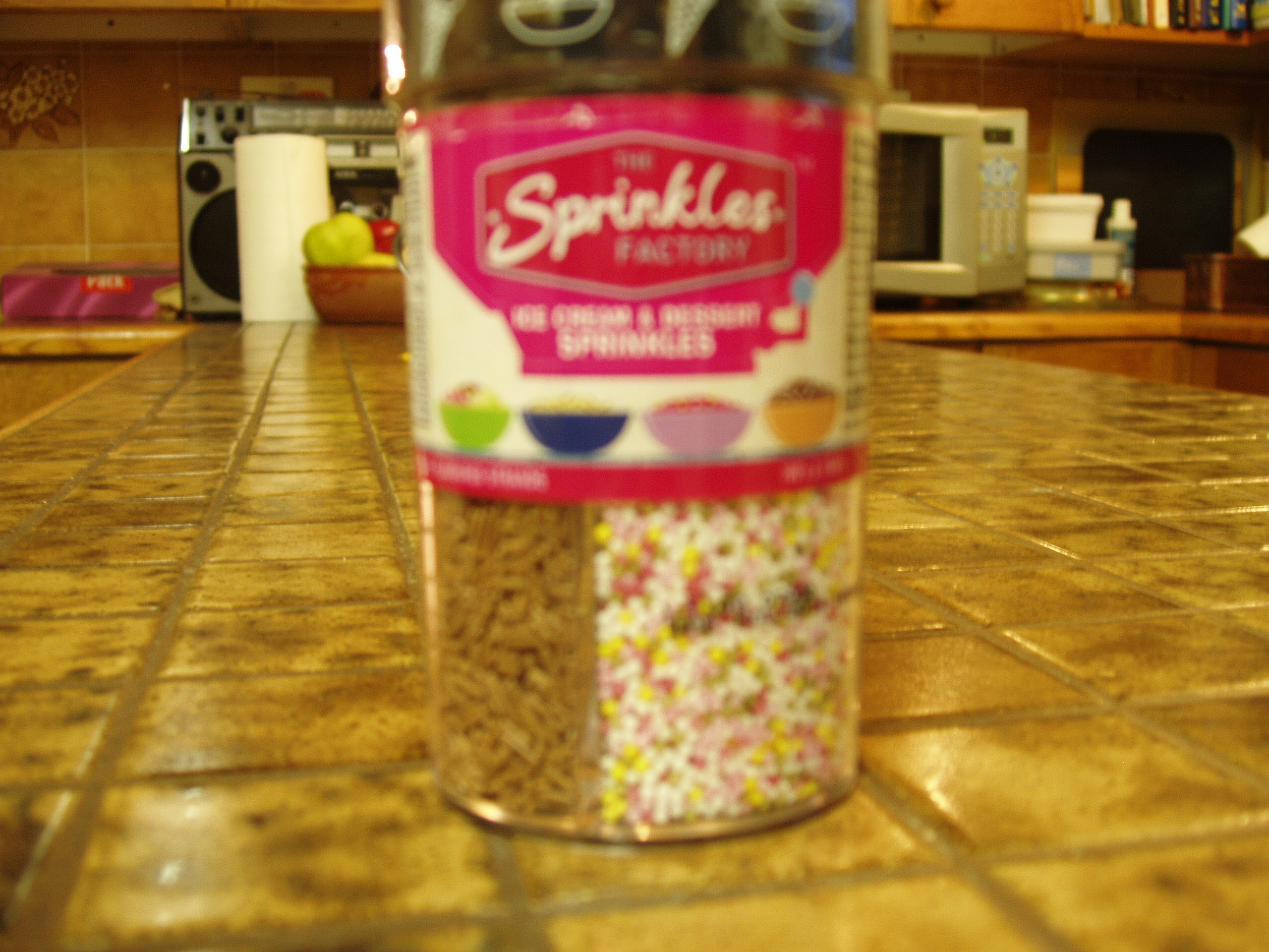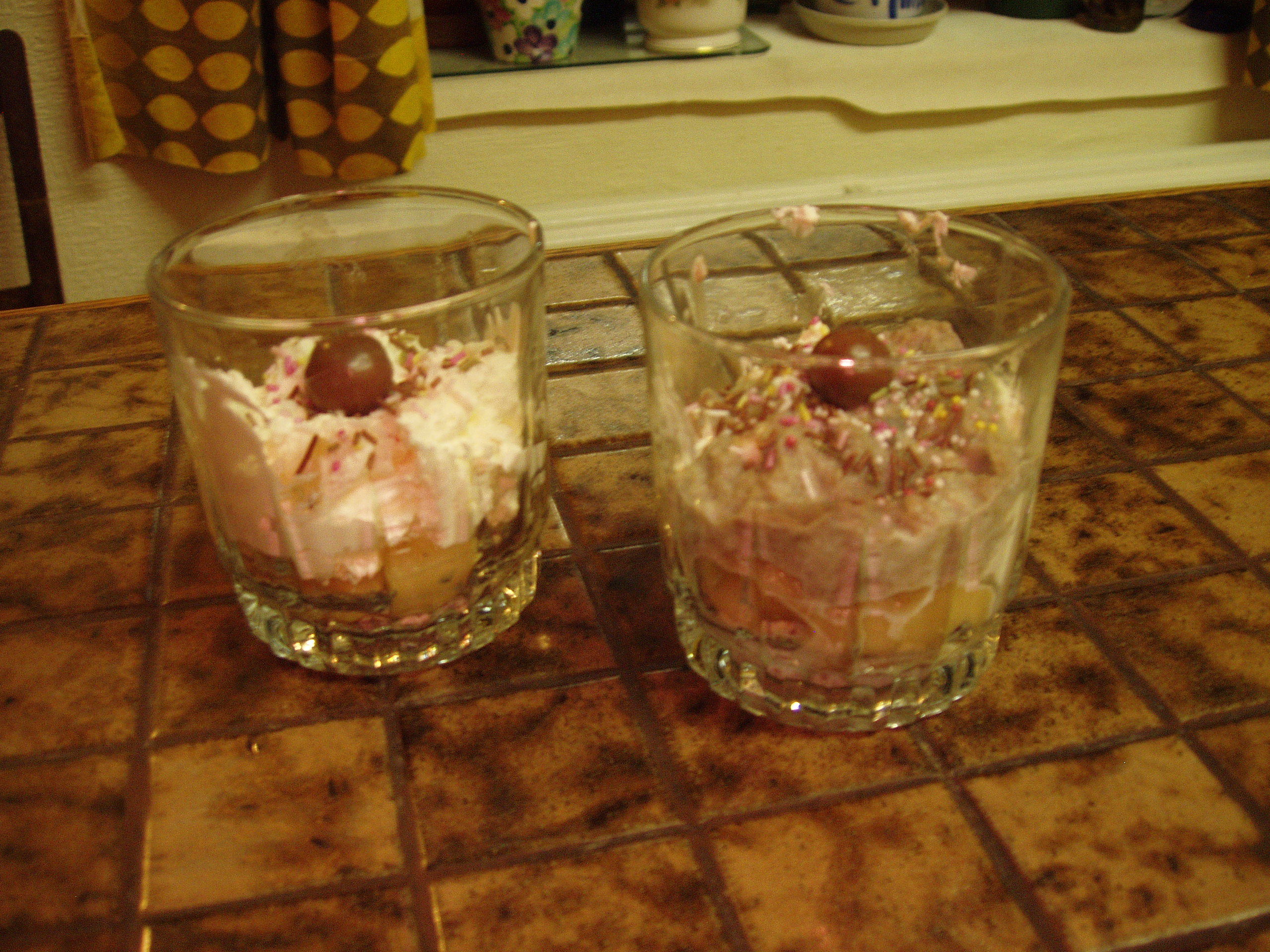 Stewed apple, Maltesers, double cream, tinned mushrooms (can you spot the continuity error?) and Sprinkles.