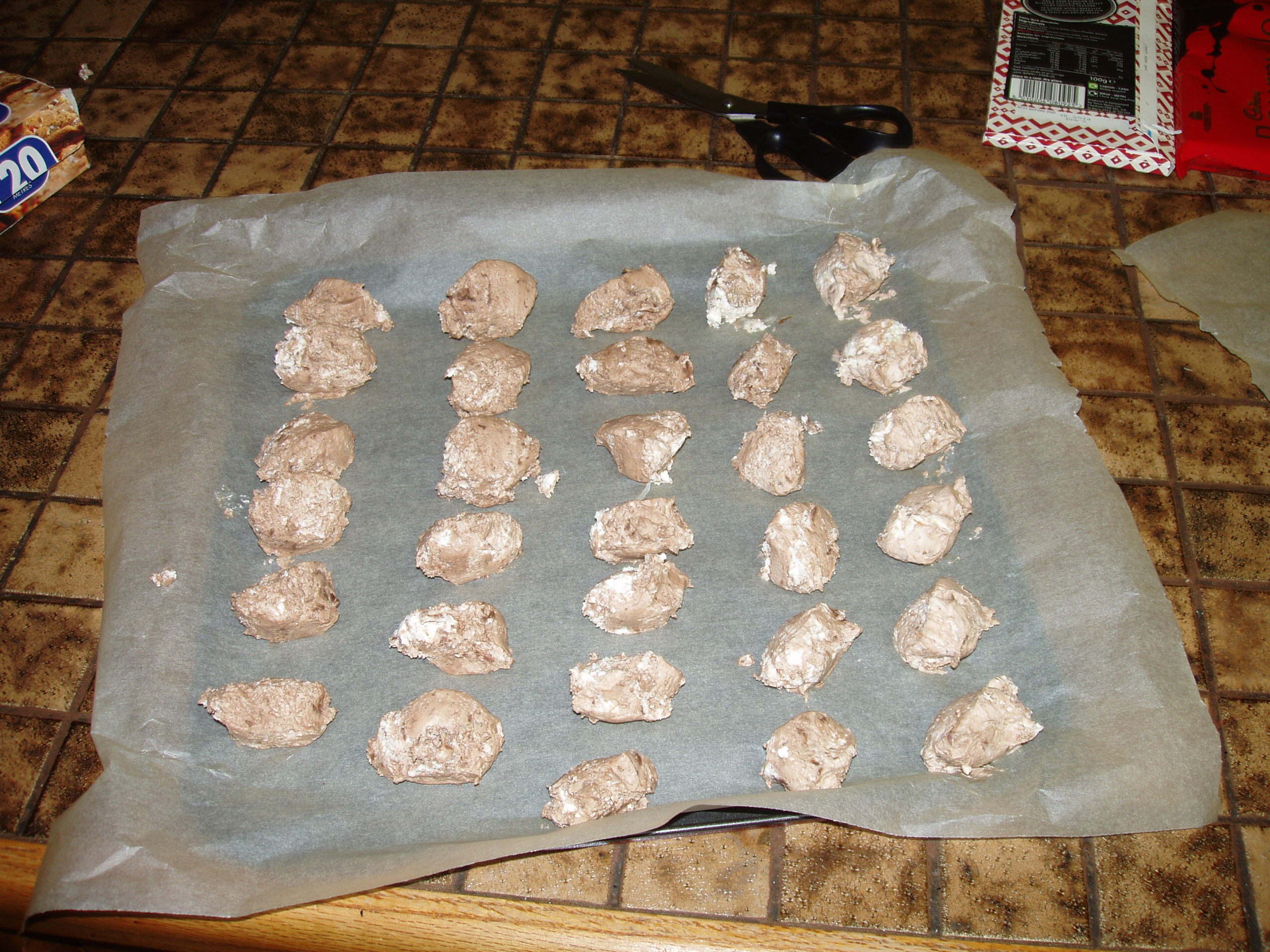 Next comes the ‘technical’ part where you have to form your individual truffle things and coat them with chocolate. Now, I don’t have a chocolate mold so the tactic I use is to form the mix into loads of quinells: