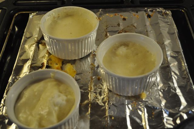 And I transfer the mix to some ramekins, one of which has One Of The Most Hideously Inedible Things Ever (GR) as an extra ingredient: