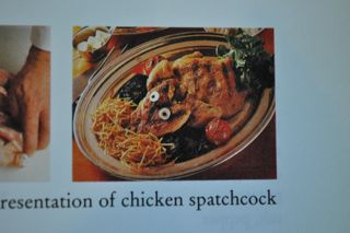 Anthropomorphised Chicken Spatchcock with realistic googly eyes…