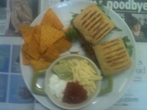 I got this at Rig Bike Store in Glasgow where all the bike messengers hang out. This is a pulled pork chiabatta wit nachos, assorted dipping things and it was lovely. It only cost me £3 which is CHEAP!