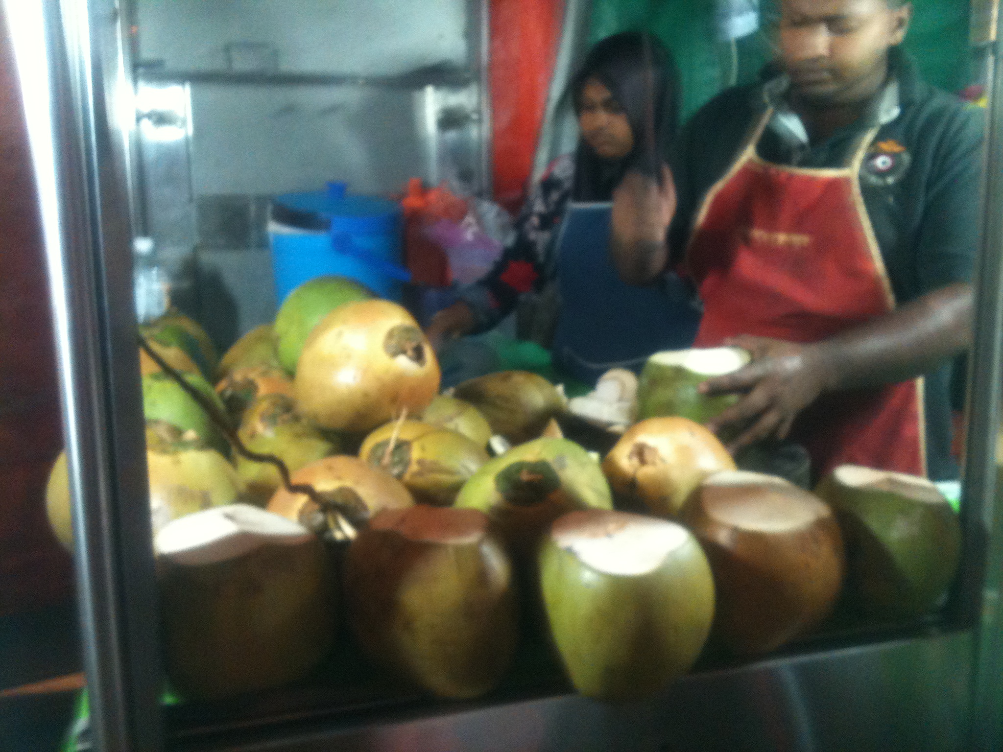 I arrived fairly late so we didn’t have time to do much save travel to China Town in Kuala Lumpur where we were staying. In the picture above is a dude chopping up fresh coconuts. The water is served with or without flesh and over ice. It’s nice and totally full of electrolytes which one needs to replace when it’s 90 degrees, what what.