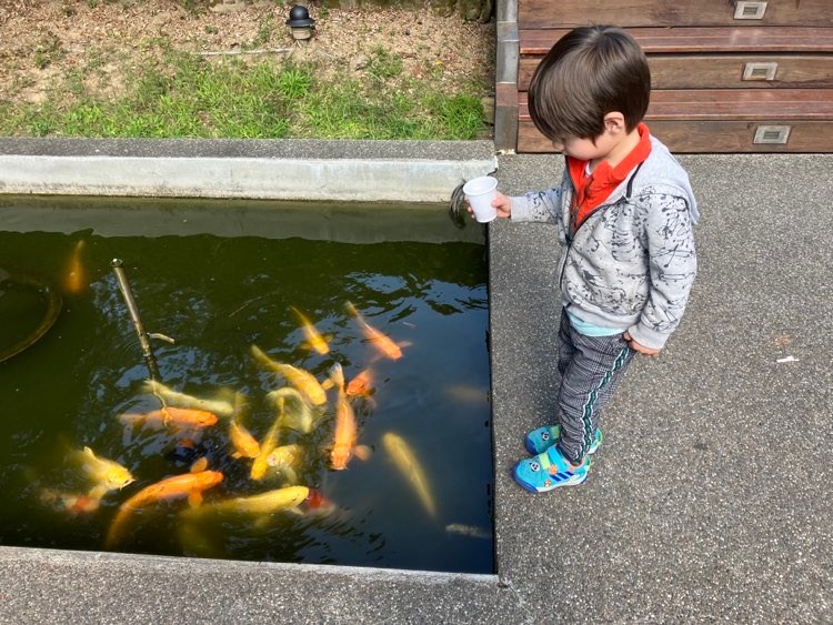 It was kind of dry and maybe a bit salty but when the waitresses began going NO NO NO and pointing outside I realised I was eating the fish food Gabriel was about to feed them: